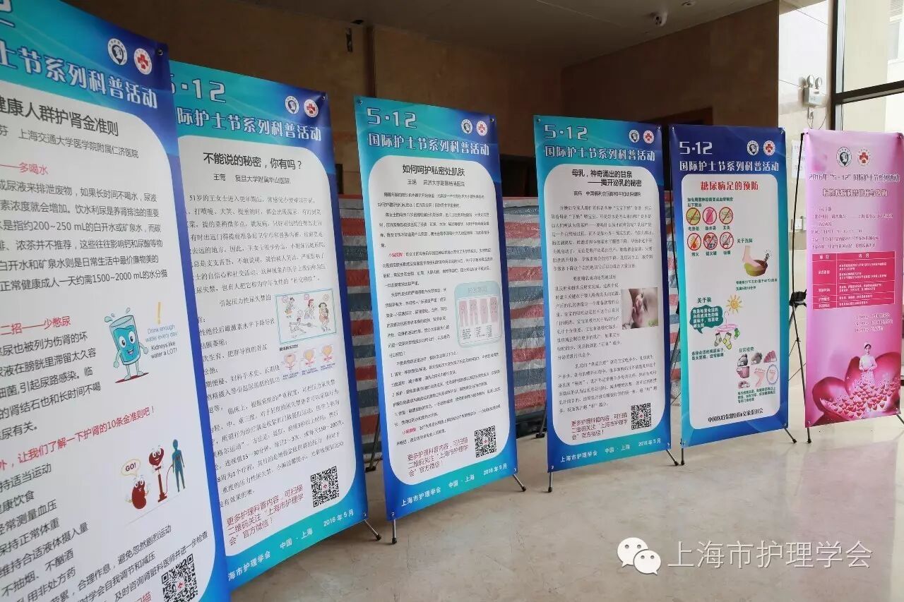 活动现场整齐摆放了肾脏病护理、泌尿系统护理、皮肤护理、母婴护理和糖尿病足护理的相关科普知识展板,内容丰富,图文并茂,深入浅出,通俗易懂。