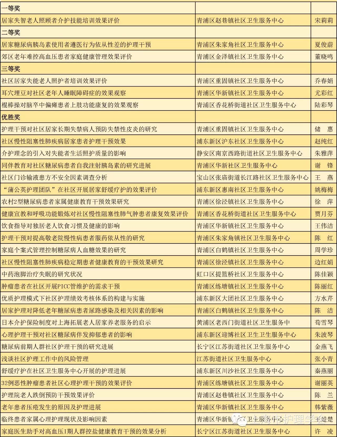 2015年上海市护理学会社区护理学术论文评选获奖名单