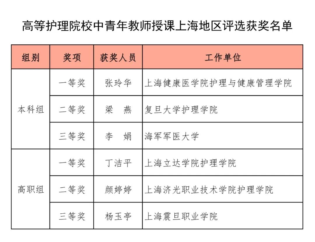 【学会通知】第二届全国高等护理院校中青年教师授课比赛上海地区选拔赛获奖名单公示