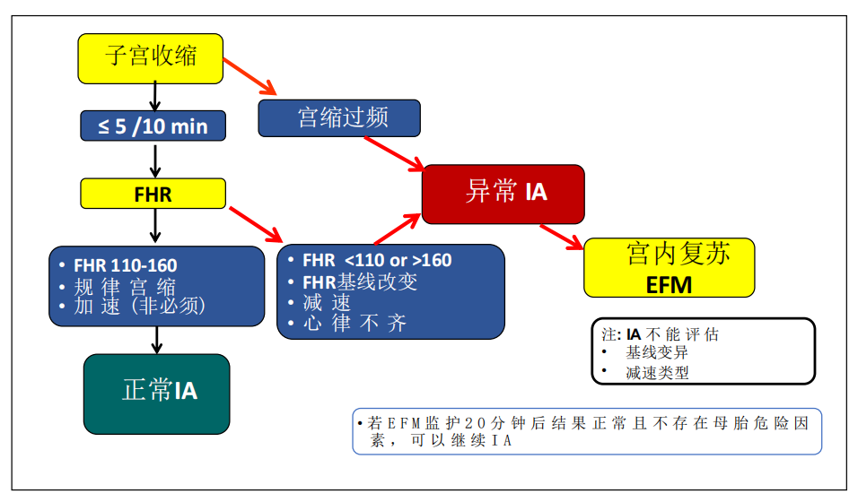 4.1 进入待产室时胎儿健康状况的评估 1项关于IA和EFM在产妇进入待产室时FHS中应用的系统评价结果显示,对于无不良妊娠结局风险的产妇,进入待产室时使用EFM进行监测会增加产妇剖宫产率、产时连续EFM实施率和胎儿头皮采血的概率,而在人工破膜术、阴道器械助产、胎儿或新生儿死亡率和患病率等方面没有差异……
