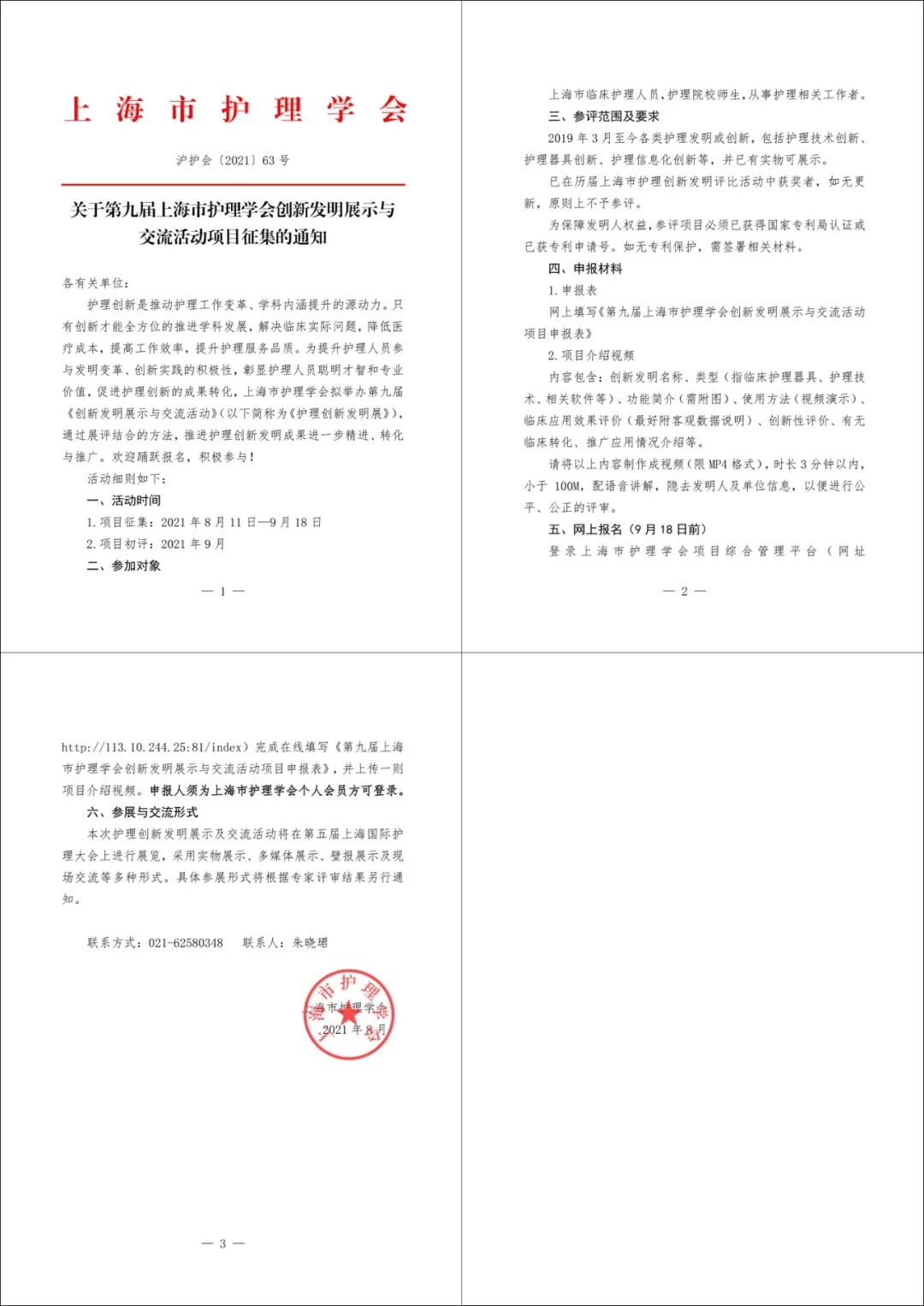 1. 申报表 网上填写《第九届上海市护理学会创新发明展示与交流活动项目申报表》