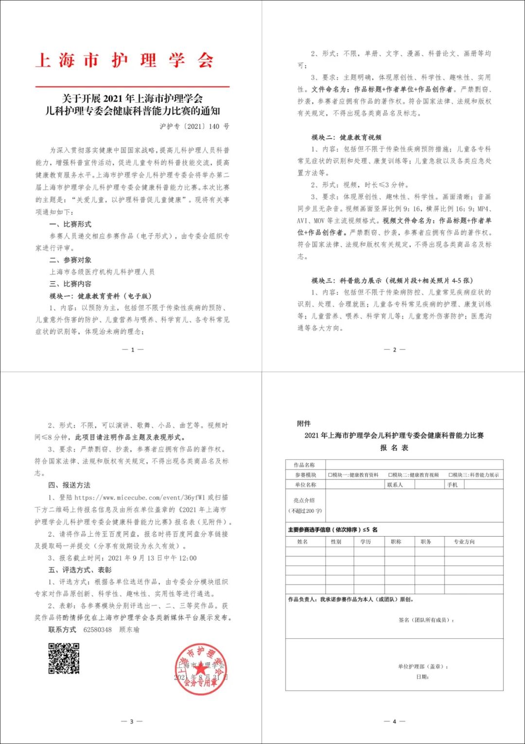 或扫描下方二维码上传报名信息及由所在单位盖章的《2021年上海市护理学会儿科护理专委会健康科普能力比赛》报名表(链接中可下载)。